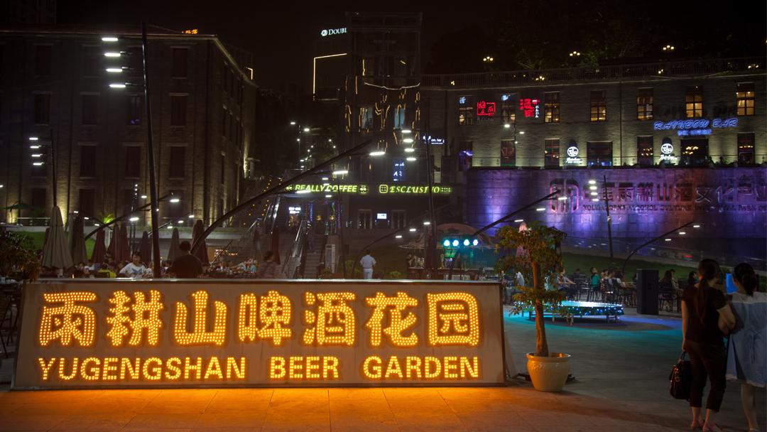 夜晚,建筑鳞次栉比,层叠出挑,灯星盏盏,灿烂迷人,给人以梦境般的感觉。尤其在地下防空洞改成的酒窖更令人赞叹,暖色灯光沿着酒柜流淌,主从配合,空间沿着灯光成纵深向统领,集恢引、神秘、优雅、大气于一身,呈现出色彩斑通如诗如画的唯美佳境。此外,休闲广场大胆起用地埋灯,绘成几何图形、轴线灯带,形成简洁的空间序列,赋子广场浓烈的现代感,让人从历史走进现代。